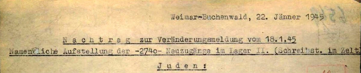 Clearly, this last assumption is not based on adequate evidence. We know both from pre-war records that Leo was born and lived in Częstochowa before the war. And we know from Hasag Pelcery records that the facility was evacuated in January 1945 as Russian troops moved through Poland. In addition, intake records (below), plus transport records (below) make clear Leo was one of many slave laborers sent to Buchenwald and then Dora Mittelbau in January, 1945.